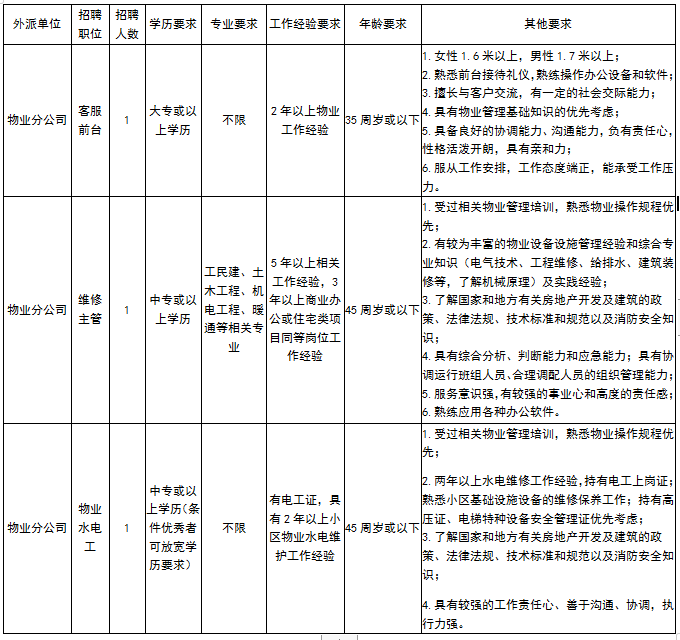 清遠(yuǎn)市弘力勞務(wù)有限公司以“專注人才服務(wù),專業(yè)服務(wù)人才”為企業(yè)宗旨,力求為企業(yè)及求職者提供專業(yè)、高效的人才服務(wù)平臺(tái)。現(xiàn)因公司業(yè)務(wù)發(fā)展需要,按照公開、平等、競(jìng)爭(zhēng)、擇優(yōu)的原則誠(chéng)聘客服前臺(tái)、維修主管和物業(yè)水電工各一名外派到清遠(yuǎn)市德晟公共資源管理有限公司物業(yè)管理服務(wù)分公司。