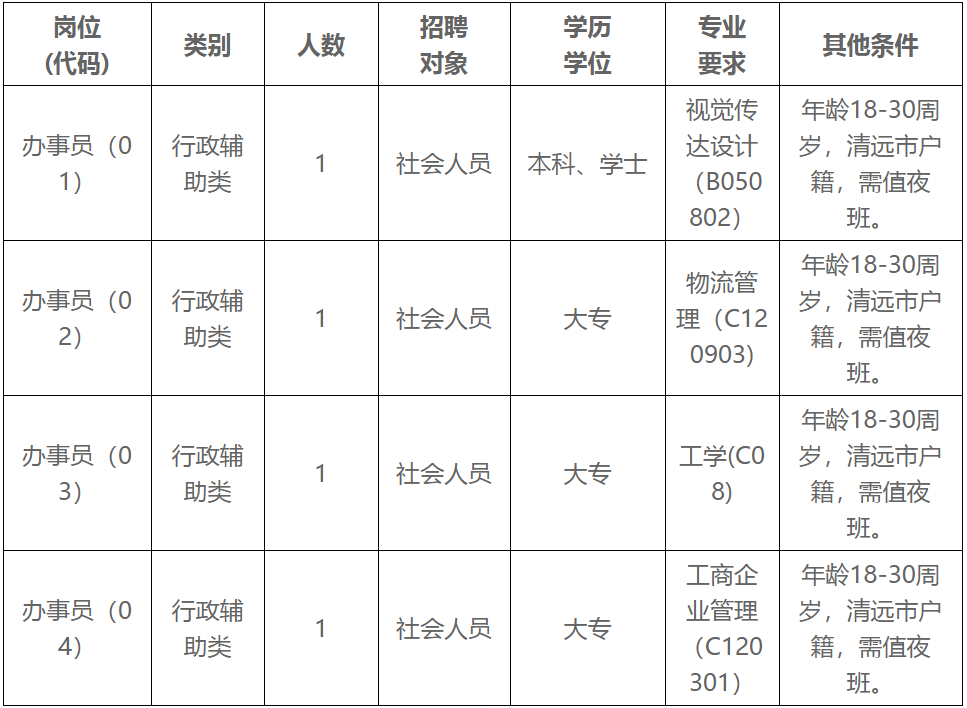 根據(jù)工作需要,清遠市清城區(qū)源潭鎮(zhèn)人民政府面向社會公開招聘專項工作聘員4名,F(xiàn)將有關(guān)事項公告如下: